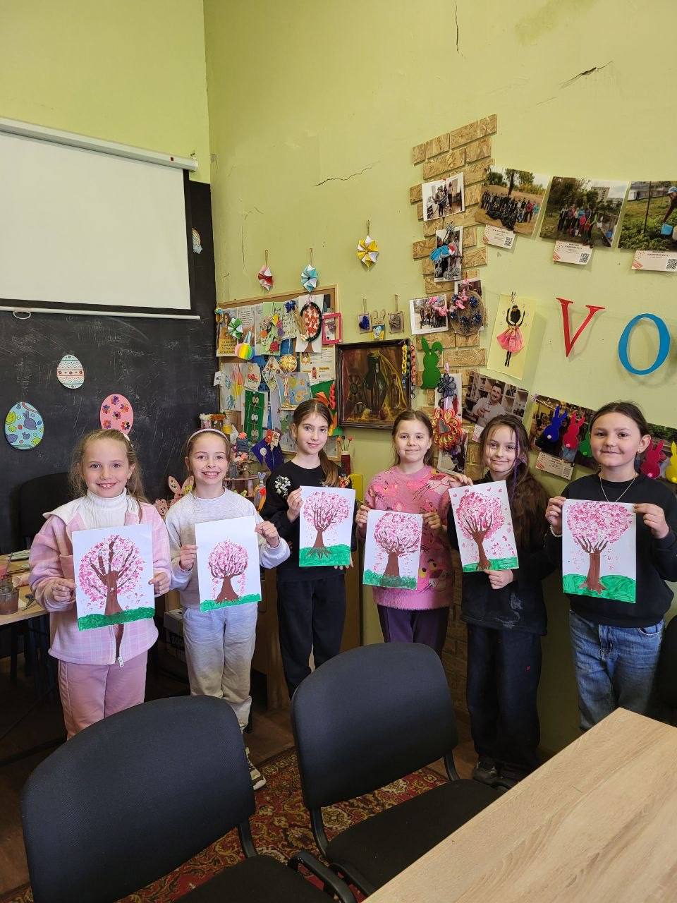 Під час заняття з креативного малювання діти не лише опановували нові техніки, а й вчилися передавати настрій через кольори, фактури та власне бачення. Кожне дерево сакури вийшло унікальним — наповненим власною історією, настроєм і характером.