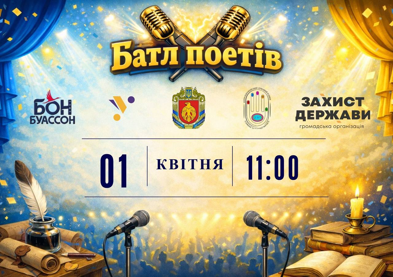 Запрошуємо взяти участь в обласному літературному конкурсі авторських творів «Батл молодих поетів» Конкурс об’єднає талановиту студентську молодь закладів професійної, фахової передвищої та вищої освіти Кіровоградської області задля популяризації сучасної української поезії, розвитку творчих здібностей та підтримки молодих авторів